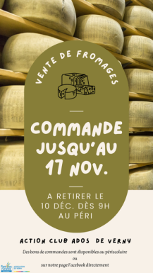 Le club ados de VERNY vous propose une vente de fromages en partenariat avec la fruitière des Suchaux de Les Fins (25).